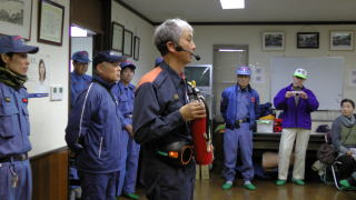 あいにくの雨の為、富士公園から自治会館へ場所が変更となり、参加者が少なかったものの、参加者一人一人が体験できる良い訓練の場となりました。