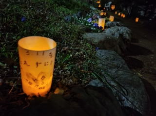 今年は、追悼週間として9日間、しらとり川の川辺の遊歩道沿いにLEDキャンドルを点灯しました。