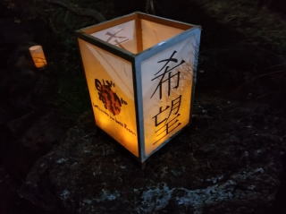今年は、追悼週間として9日間、しらとり川の川辺の遊歩道沿いにLEDキャンドルを点灯しました。